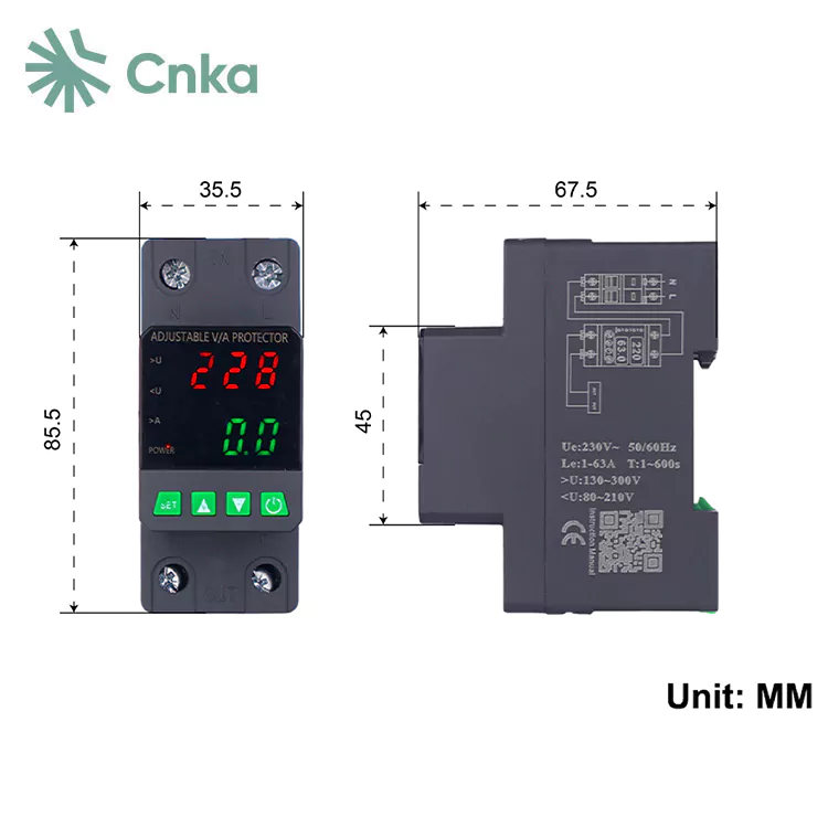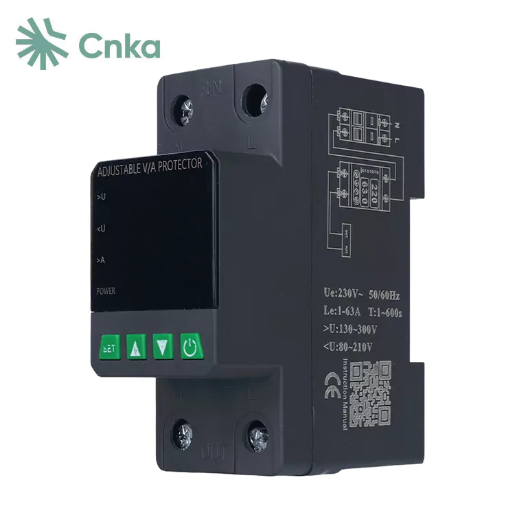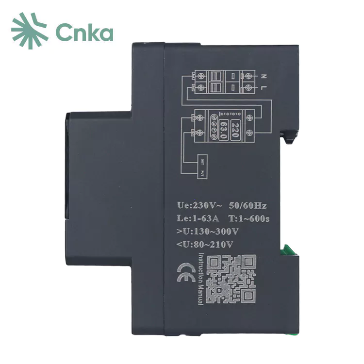 CNKA est un fournisseur chinois bien connu qui fournit en gros du relais de protecteur de tension à 2 pôles de sa marque. Ces dispositifs sont conçus spécifiquement pour les circuits AC 220V à 50 Hz monophasés avec un courant nominal de 63A, ce qui en fait un choix idéal pour protéger les boîtes de distribution résidentielles ou les fils alimentant l'énergie à un équipement monophasé.