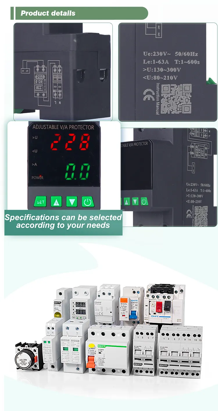 Équipé d'un écran numérique et fabriqué avec des composants électroniques modulaires importés, il a une forte fiabilité et des performances. Le protecteur coupe automatiquement et rapidement l'alimentation pendant les tensions anormales (telles que la surtension, la sous-tension ou les fluctuations de grille) et restaure l'alimentation après que la tension revienne à la normale.