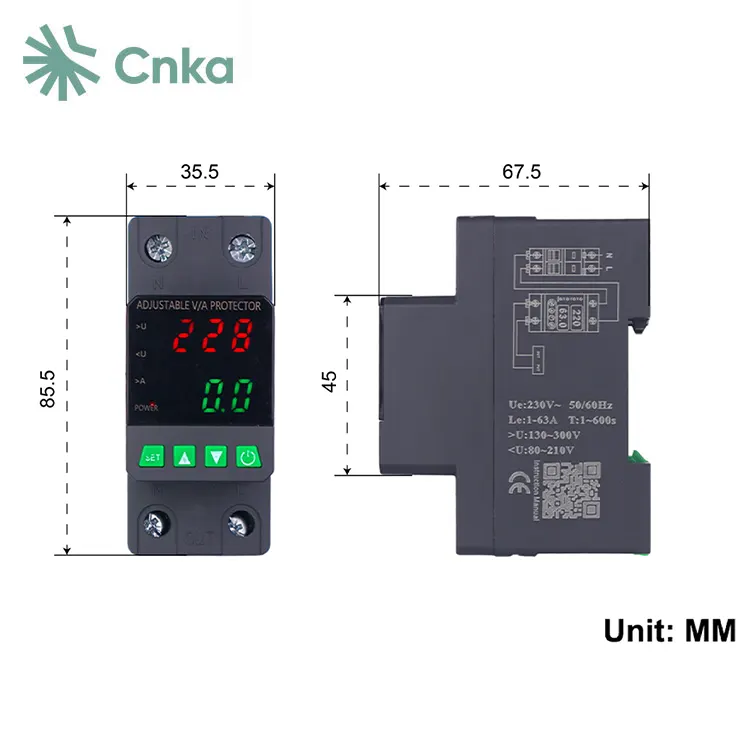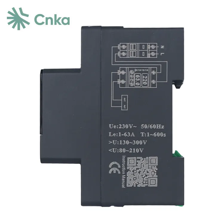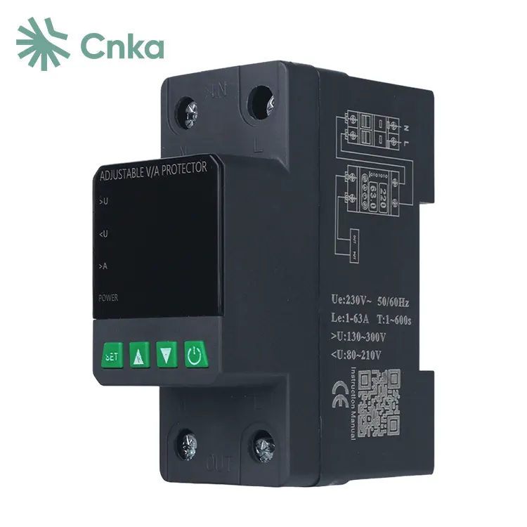 CNKA est un fournisseur chinois bien connu qui fournit en gros en gros du protecteur de tension à double affichage de sa marque. Ces dispositifs sont conçus spécifiquement pour les circuits AC 220V à 50 Hz monophasés avec un courant nominal de 63A, ce qui en fait un choix idéal pour protéger les boîtes de distribution résidentielles ou les fils alimentant l'énergie à un équipement monophasé.